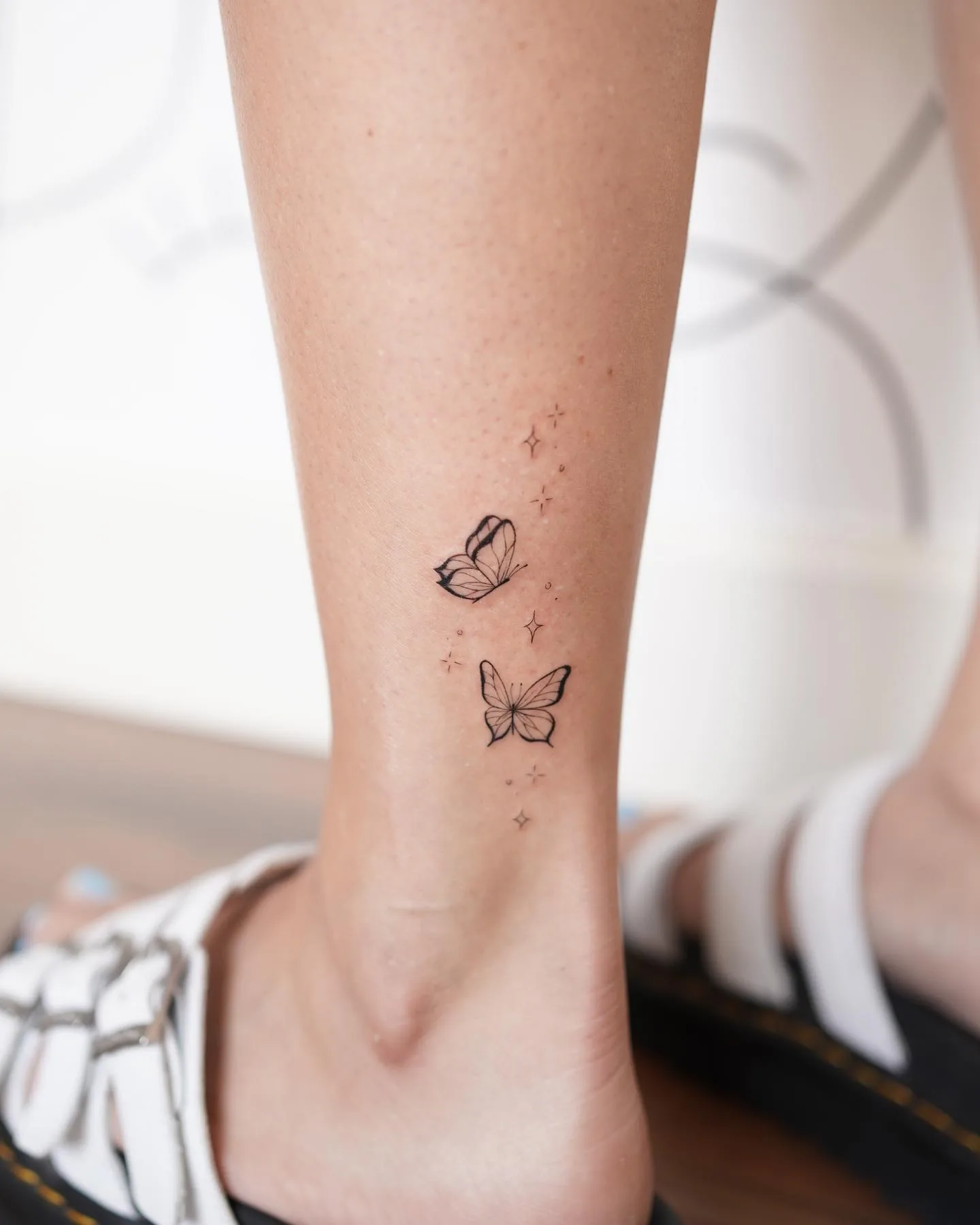 You know how some tattoos are loud? This one whispers. Two soft butterflies, barely outlined, just floating.